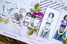 Классное у нас задание придумано и интересное! Мне достался обязательный элемент - фотоаппарат. :) Правильно! Какие же летние прогулки без фотоаппарата? ОЭ у меня и на фоновой бумаге фотоаппараты, и вырезанный стильный черный фотик - все из коллекции "Supergirl", а яркие листики, бабочки и цветы из коллекции "Настроение" отлично дополнили мою идею яркими акцентами.